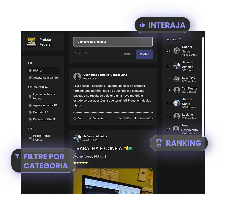Faça parte da Comunidade exclusiva dos alunos PP Cursos e torne seus estudos mais dinâmicos com nosso sistema de ranking.