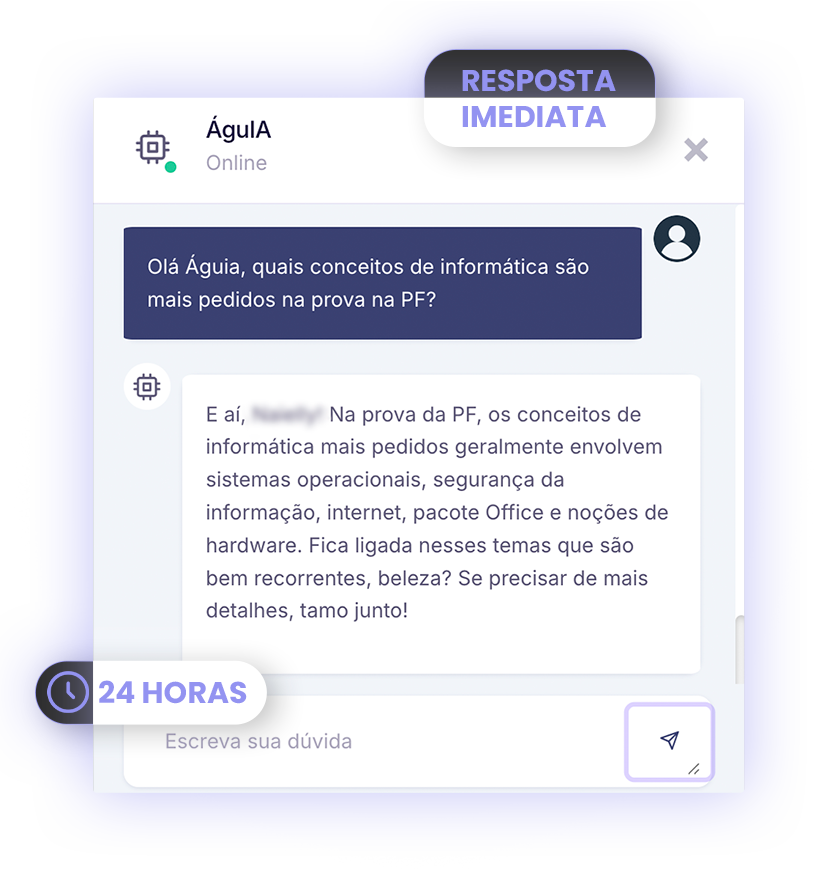 Conte com nossa IA disponível 24 horas por dia para esclarecer suas dúvidas na hora que precisar. Aprendizado contínuo, sem limites de horário.