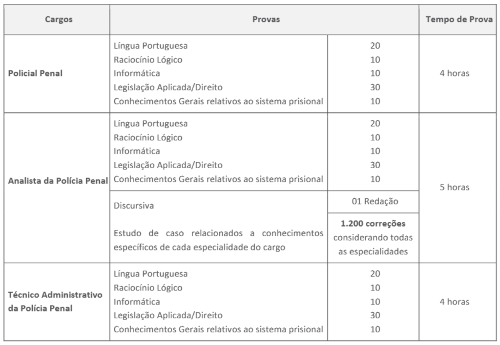 • Cargos: Policial Penal, Técnico Administrativo e Analista