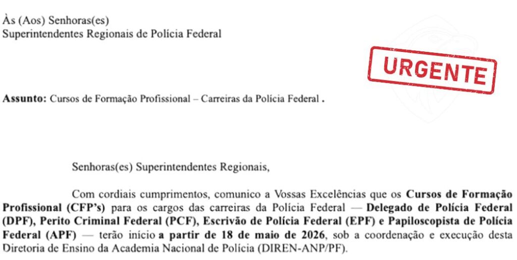 De acordo com o documento assinado por Christiane Corre Machado, Diretora de Ensino da ANP, as atividades para os cargos de Delegado, Perito Criminal, Escrivão e Papiloscopista terão início no dia 18 de maio de 2026.