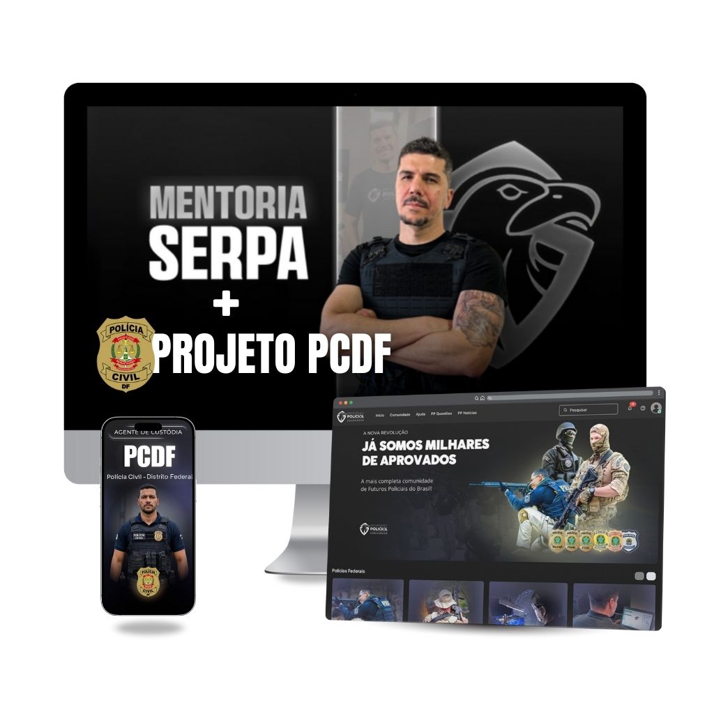 Já a Mentoria Serpa é a maior plataforma de plano de estudos personalizados para quem quer ser policial! É a mentoria que te fará estudar da forma correta para o seu concurso policial e te guiará do zero até a aprovação, mesmo que nunca tenha feito concursos na vida!